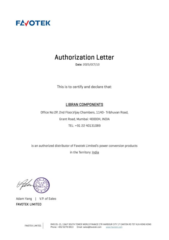 Favotek Limited Brand Website Libran Components is proud to be the leading and most trusted authorized distributor of Favotek Limited’s power conversion products in India. Send ENQUIRY